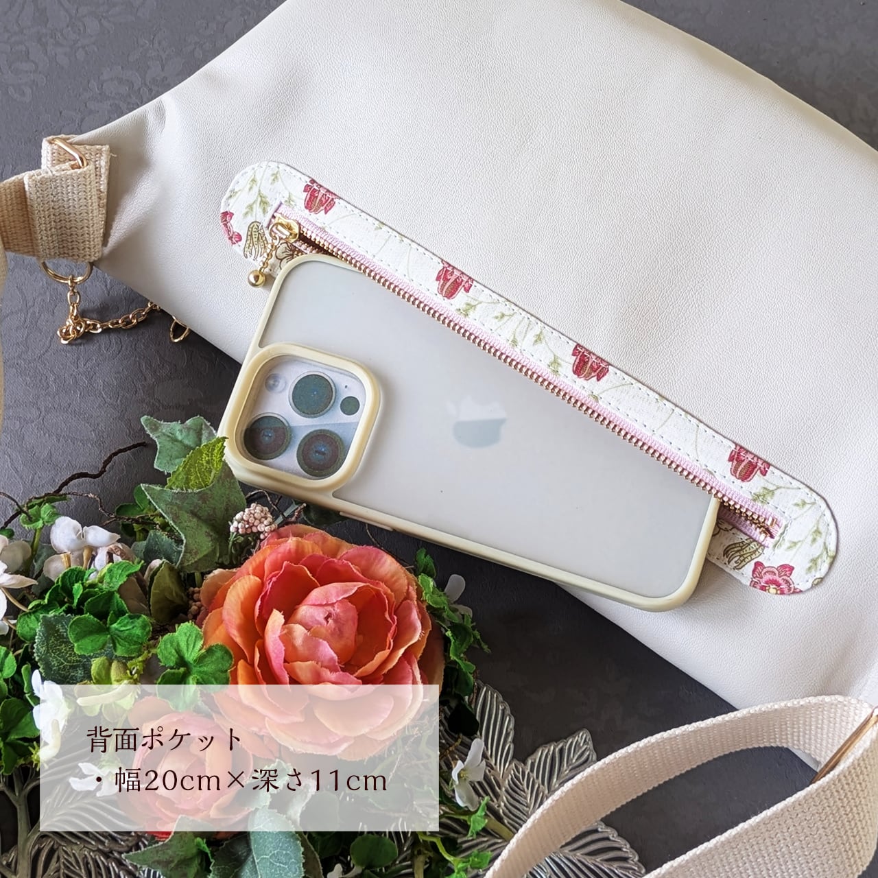 内ポケット2室:幅14cm+マチ2cm・19cmフラット ×深さ12cm